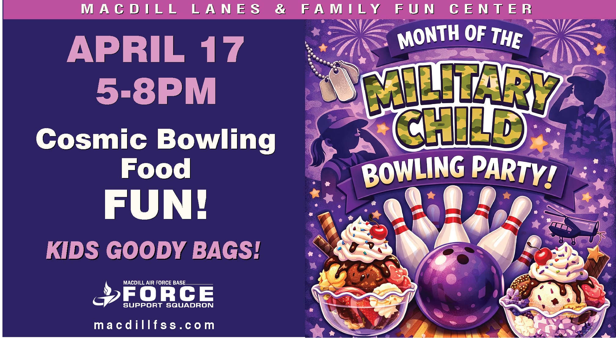 Join us for a deep dive into VA Benefits and CH 35 for you or your children planning to go to college! When: April 8, 2026 Time: 11:00 AM Where: SOCOM Resource Center 2600 Pink Flamingo Ave, MacDill AFB For more information please reach out to Dr. Venetia Waters | Venetia.waters@us.af.mil | (813) 828-0146 Roll on by during Happy Hour! | 2-5 PM | Every Tuesday, Wednesday, & Friday! $12/hr Lane *shoes not included | $3 Domestic Drafts |