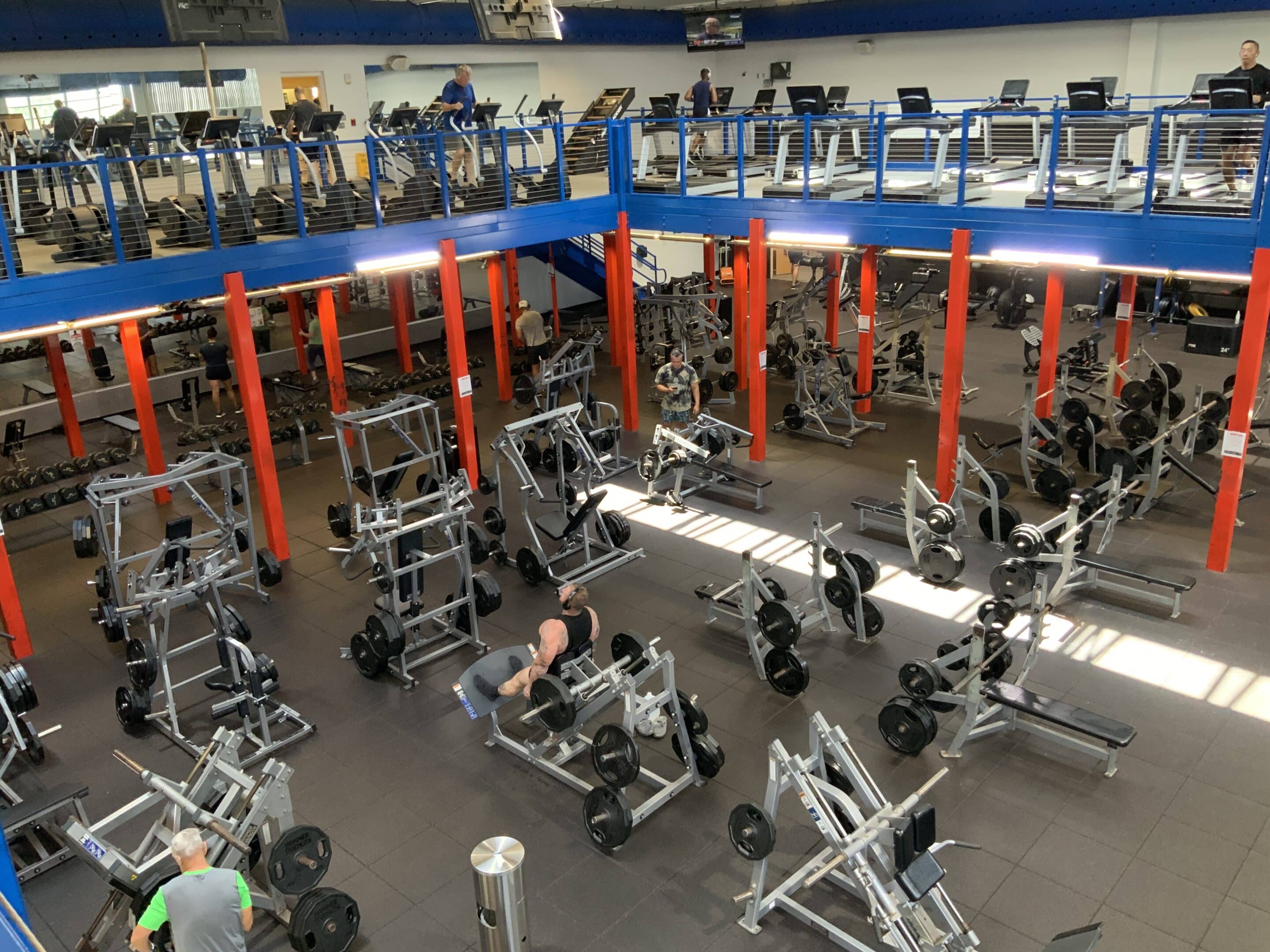 • Cardiovascular area with treadmills, recumbent bikes, elliptical machines, upright bikes, AMTs, rowers, versa/rope climbers